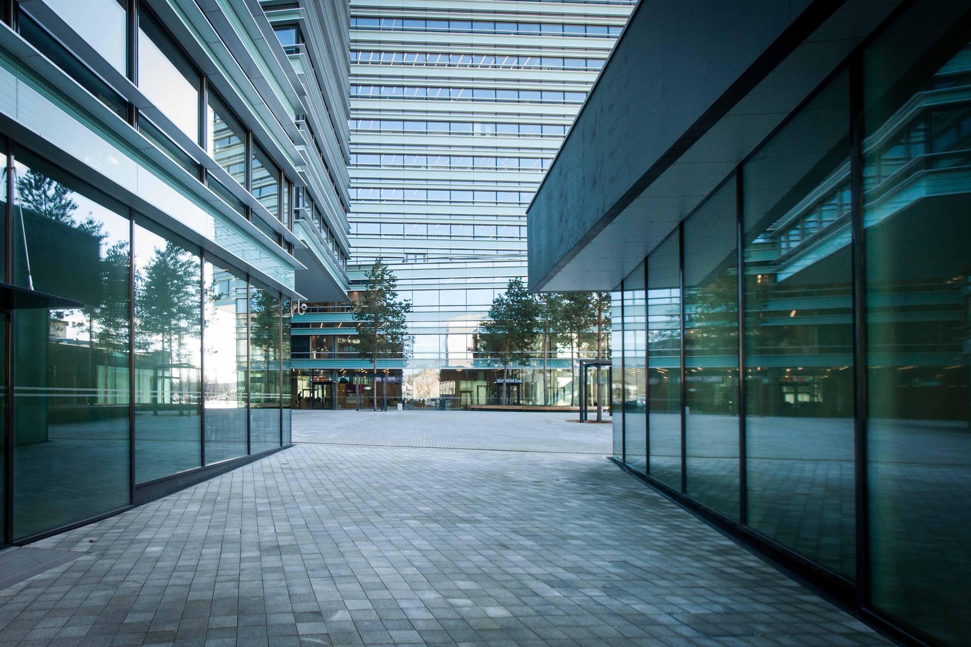 Gleaming glass in a shimmering cityscape. Welcome to sleek urban living.