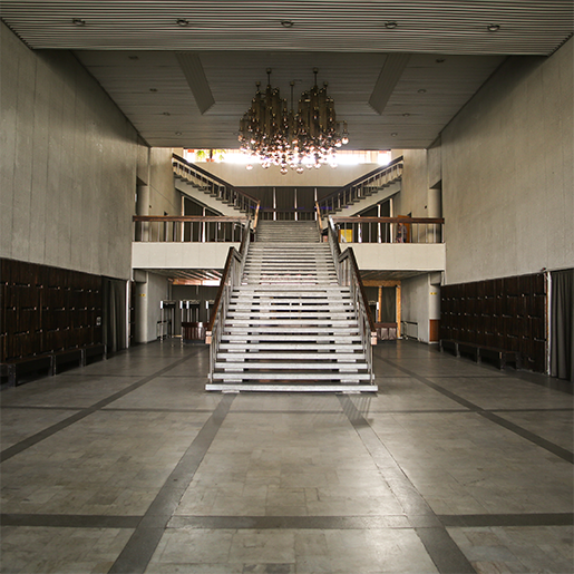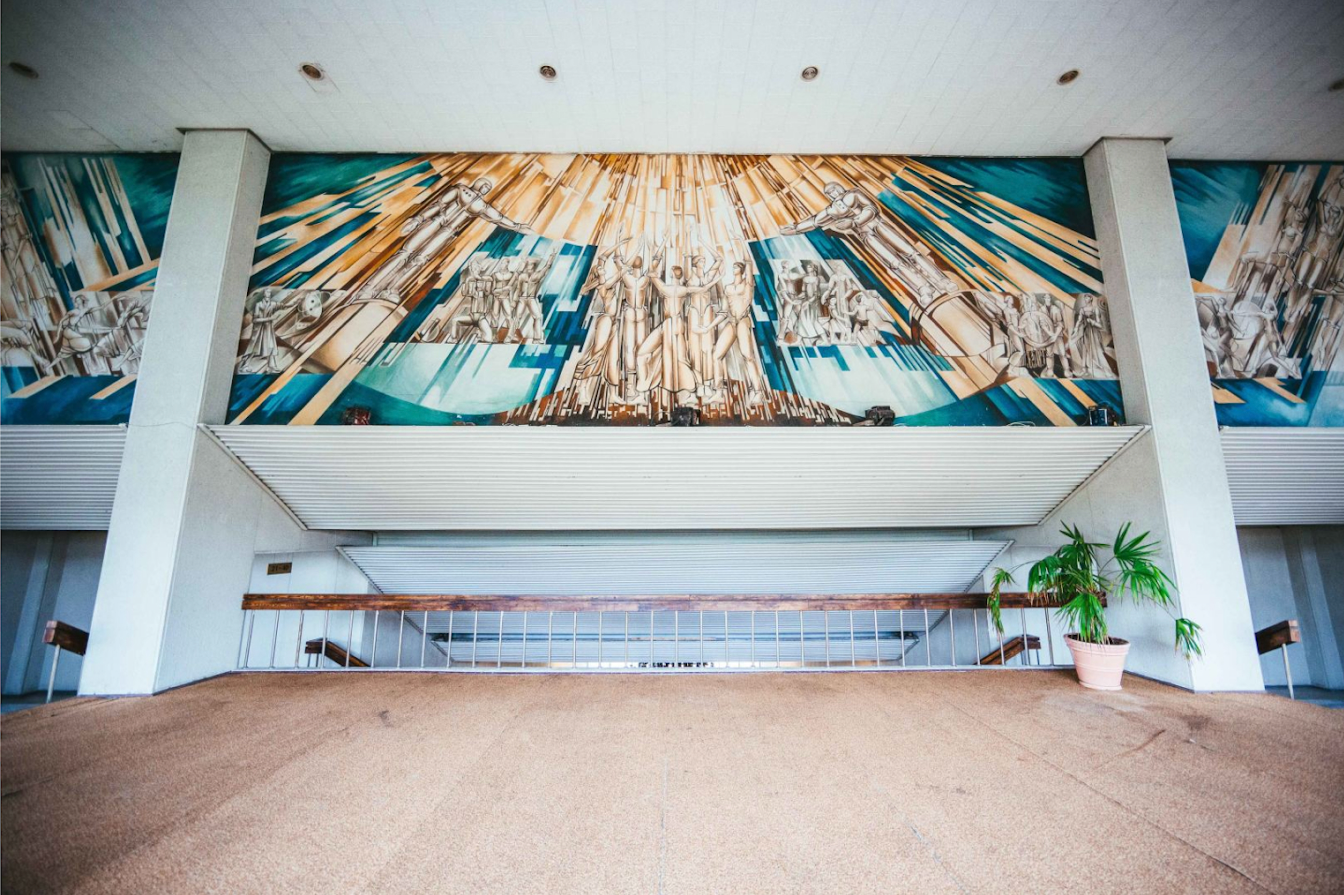 Moody brutalism made real. Soulless architecture and graffitied concrete create grit and gravitas.